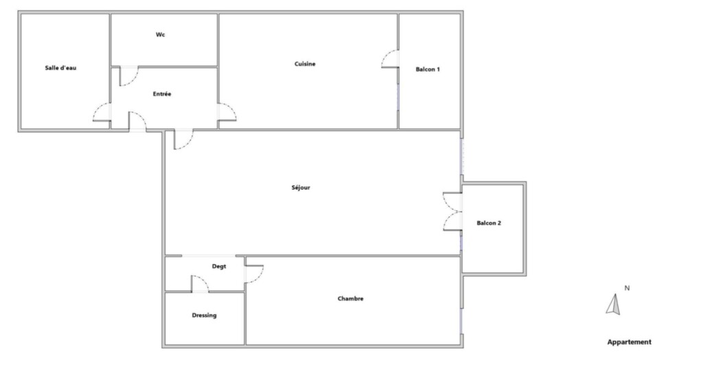 On the second floor of a QUIET residence with intercom, elevator and GUARDIAN, comprising an entrance (3.85m2), a beautiful square living room (17m2) opening onto a BALCONY (2.45m2), a beautiful bedroom (10.13m2), a dressing room (2,66m2), a fitted kitchen (6.32m2) opening onto another BALCONY (2.45m2), a shower room (3.97m2), a toilet (1.56m2), a cellar (3.95m2), a bicycle room, a parking space in front of the building (8.61m2).