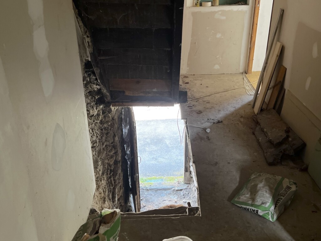 The 2 staircases need to be redone or replaced. No land. No drainage but possible to install a small pit in the ground. The roof is less than 10 years old but some slates need to be replaced.