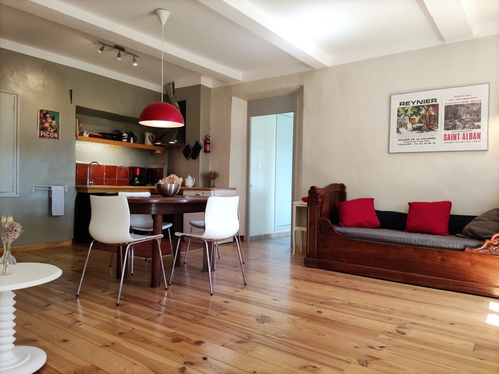 • Gîte 1 (46 m²) : Porte d’accès privée sur la grande terrasse. Cuisine/salon spacieux, chambre et salle de bains. Dispose d’une terrasse privée attenante à la grande terrasse.