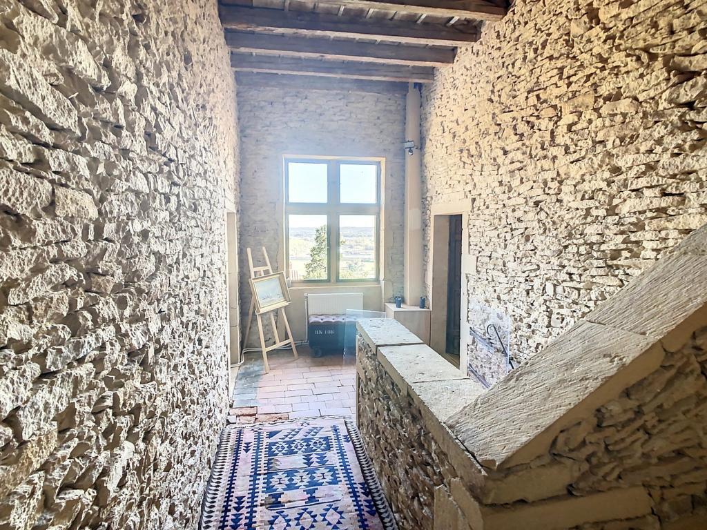 Les espaces de vie offrent de beaux volumes avec pierres apparentes, cheminées d’époque, cuisine rénovée et accès à un patio extérieur. Une pièce située dans la tour, anciennement chapelle, offre une vue remarquable. Le bien fait partie d’une petite copropriété et dispose de deux places de stationnement privatives ainsi que d’une cave voûtée.