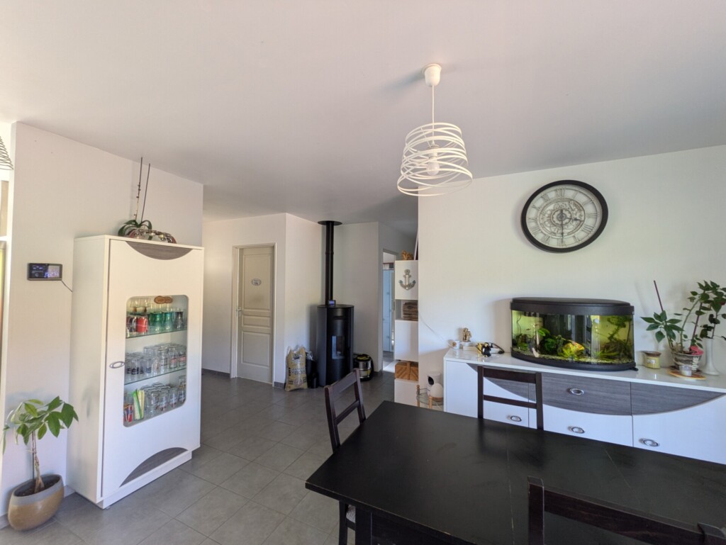 La maison est équipée d’un poêle à granulés pour vous apporter confort l’hiver à moindre coût, d’un ballon thermodynamique, de la fibre, elle est construite sur vide sanitaire et elle est encore sous garantie décennale.