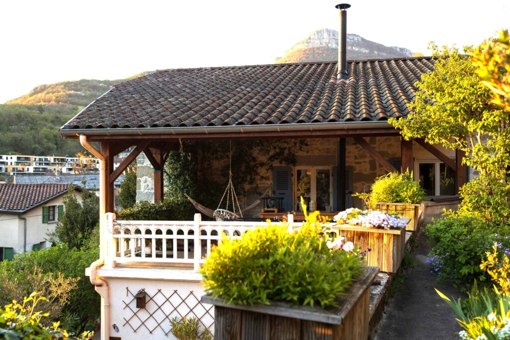 Les bâtiments sont implantés sur une parcelle de 730 m2 aménagée en espaliers sur 4 niveaux, offrant un jardin de 585 m2 arboré et fleuri. On y retrouve une terrasse en bois, idéale pour les repas en extérieurm accès à la seconde terrasse couverte, une piscine hors sol et une serre florale de 9 m2, parfaite pour les amateurs de jardinage.