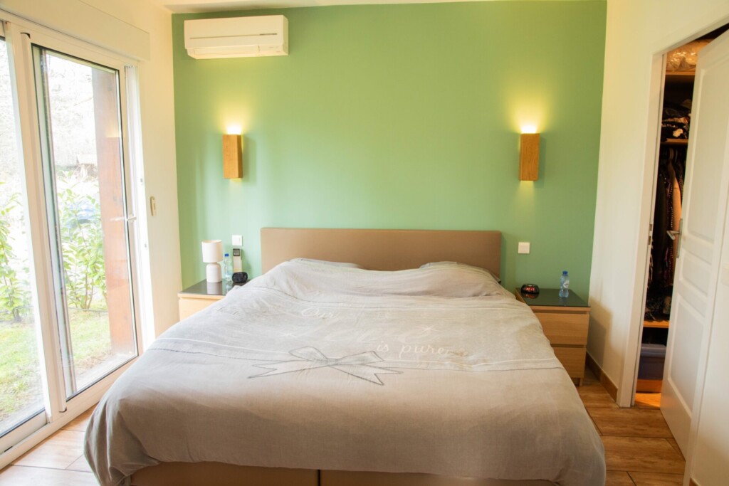 Retournons à l’intérieur pour découvrir l’espace nuit de la maison principale, conçu pour la tranquillité et l’intimité :