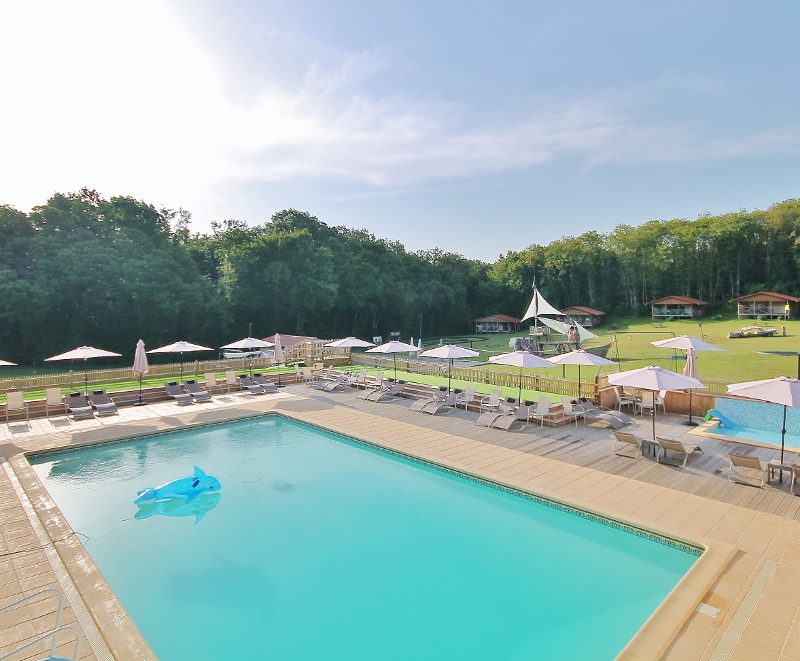 • Complexe aquatique : grande piscine (7 × 14 m) avec bassin pour enfants, pelouse et solarium avec transats.