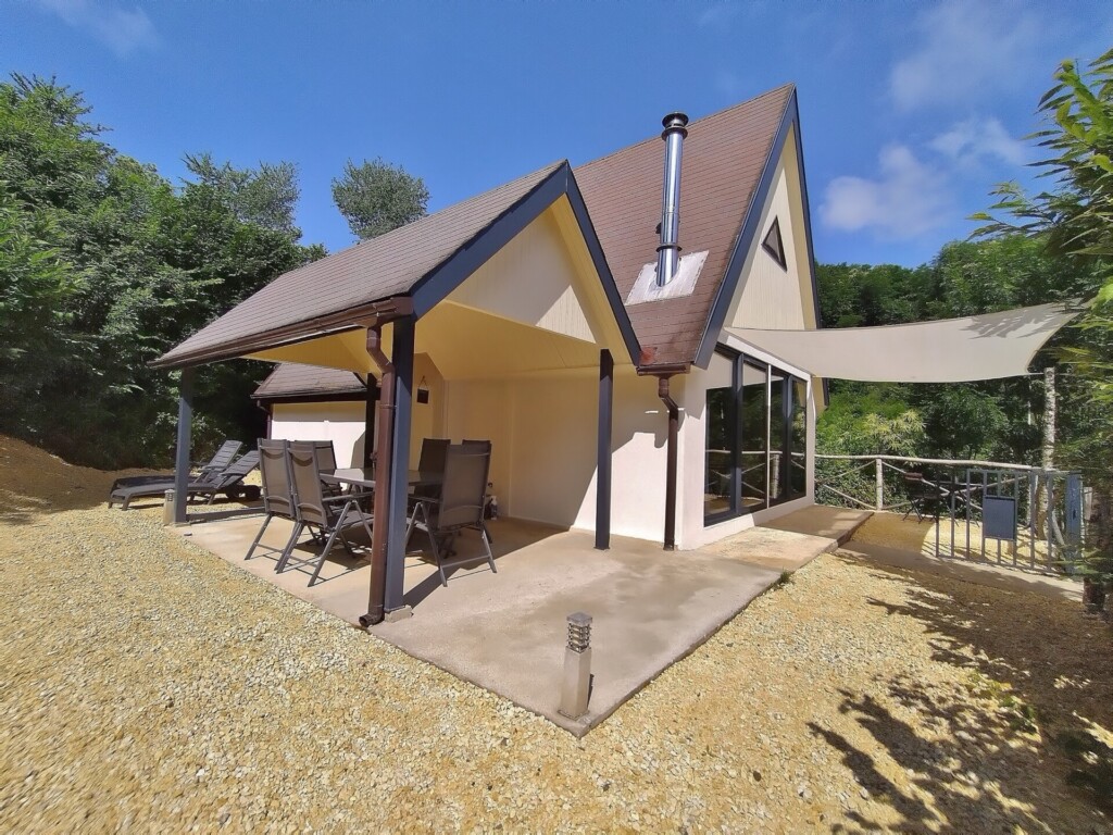 Lodges tout confort avec toit rigide, trois chambres (deux avec lits boxspring et une avec lits superposés), grande salle de bain avec douche, double lavabo et WC. Terrasse couverte avec cuisine extérieure (eau chaude/froide, plaques à induction, réfrigérateur et four).