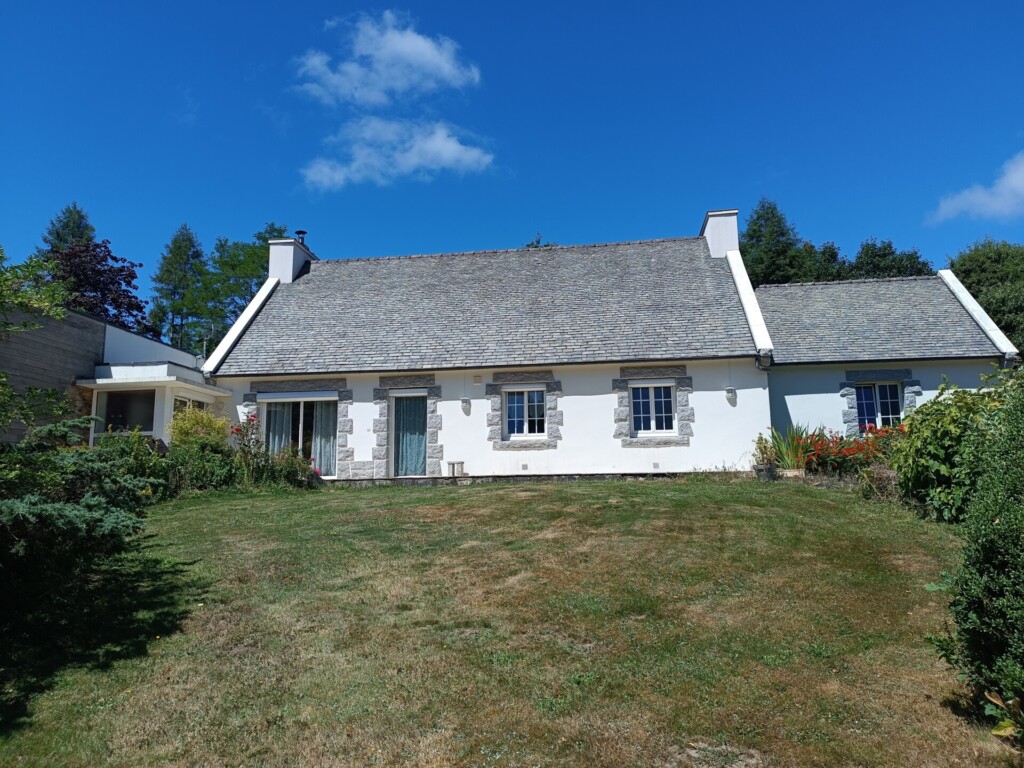 Op de hoogten en dicht bij het centrum van Huelgoat en het legendarische bos, in een weelderige, bosrijke omgeving zonder naaste buren, aantrekkelijk landgoed bestaande uit een groot, mooi huis van 183 m2 met 5 slaapkamers in neo-Bretonse stijl, gelegen in aangelegde tuinen en een bebost perceel van 18.000 m2 met ononderbroken, vrij uitzicht op het platteland.